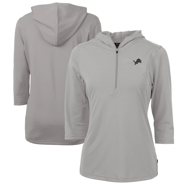 Sweat à capuche demi-zippé manches 3/4 en piqué recyclé Dry Tec pour femme, gris, Cutter & Buck, Detroit Lions