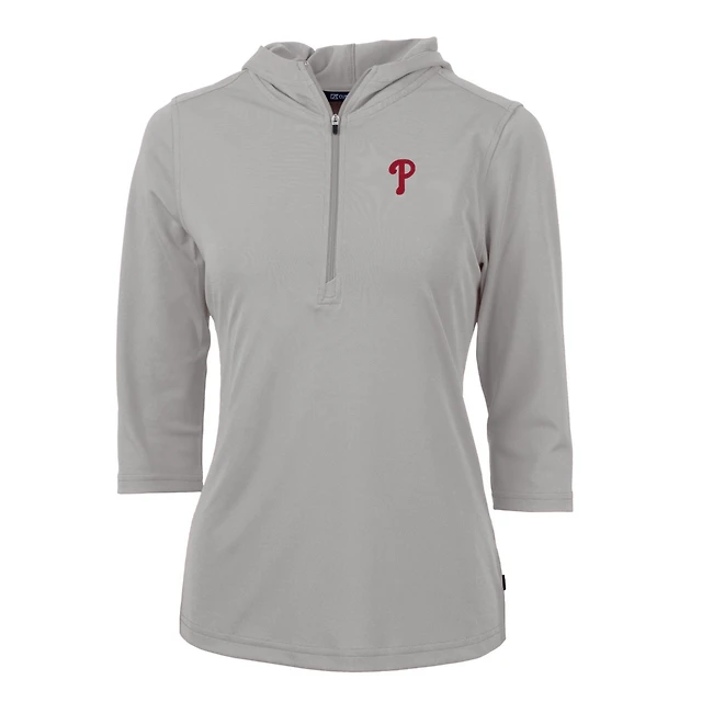 Sweat à capuche demi-zippé manches 3/4 et Virtue Eco Pique pour femme, gris, Cutter & Buck, des Philadelphia Phillies