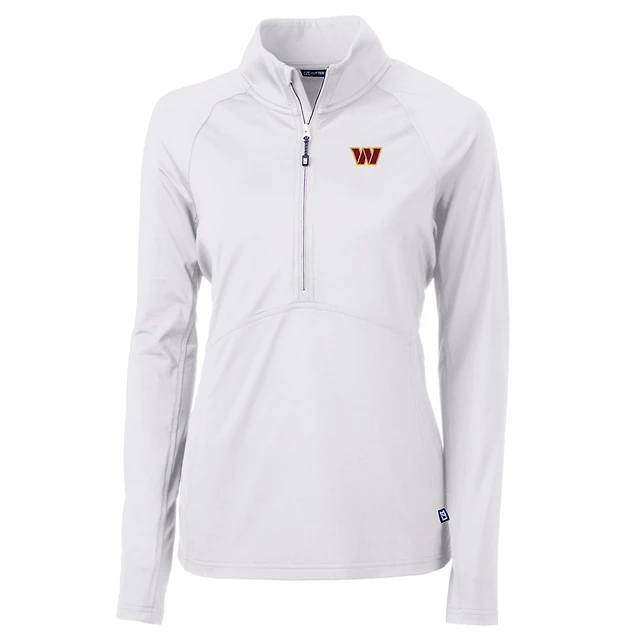 Veste pull-over demi-zipée extensible en tricot écologique pour femme, blanche, des Washington Commanders, Cutter & Buck