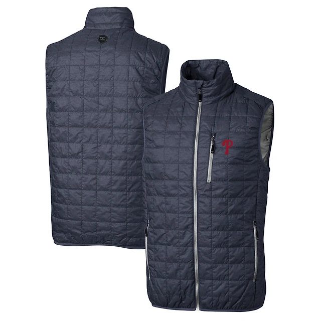 Gilet matelassé Rainier entièrement zippé pour homme, bleu marine chiné, des Philadelphia Phillies, de taille grande et