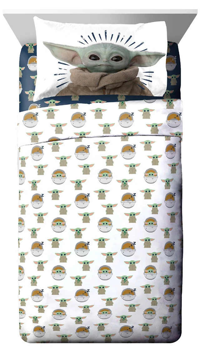 Star Wars: Le Mandalorien 'L'Enfant' Ensemble de Draps 3-Pièces pour Lit 1 Place, 100% Polyester.