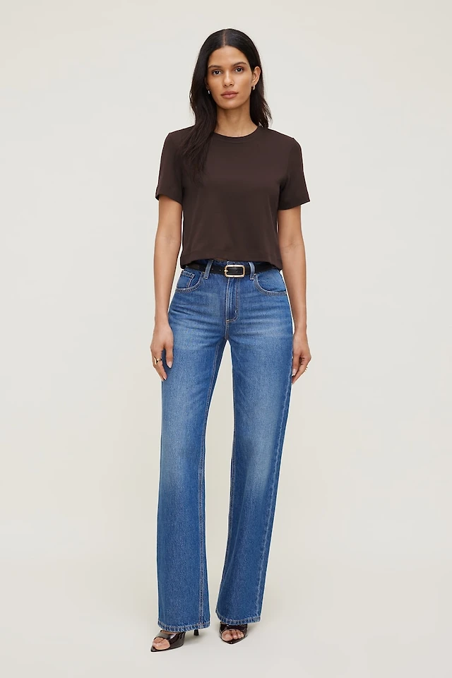 Pantalon en denim à jambe large et taille haute