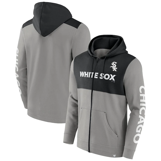 Sweat à capuche entièrement zippé pour hommes Fanatics gris/noir Chicago White Sox Ace