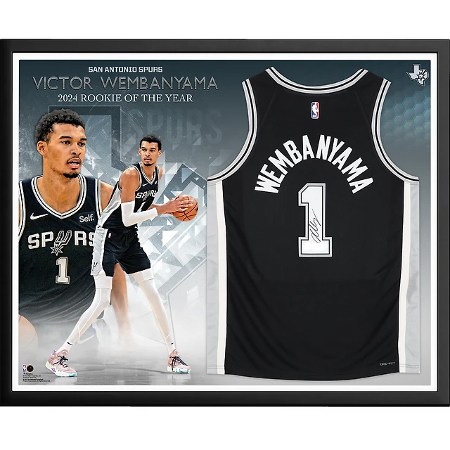 Maillot de recrue de l'année NBA 2024 Swingman Nike Icon Edition noir encadré et autographié des San Antonio Spurs de Victor Wembanyama