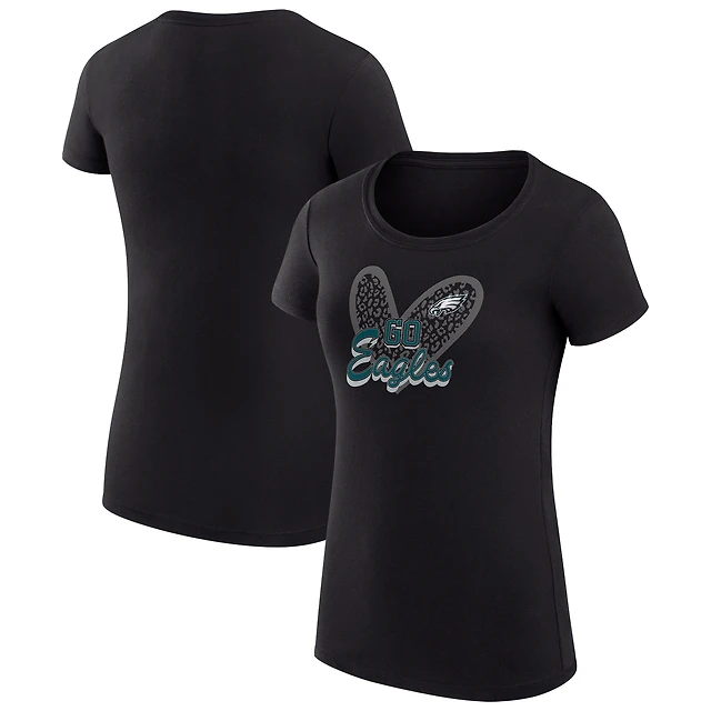 T-shirt léger à imprimé animalier G-III 4Her par Carl Banks pour femme, coupe ultra-ajustée, motif cœur, Philadelphia Eagles