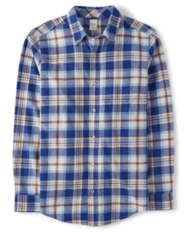 Chemise boutonnée en sergé Famille assortie à carreaux Homme