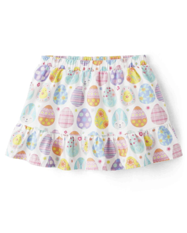Jupe-short à volants en popeline motif œuf de Pâques pour fille - Spring Celebrations