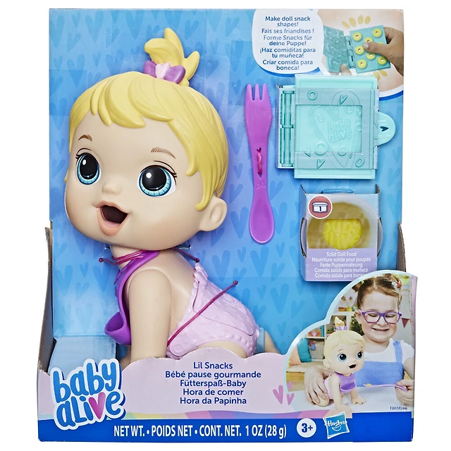 Baby Alive Bébé pause gourmande, mange et fait " caca ", 20 cm, moule à aliments, cheveux blonds