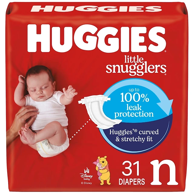 Couches pour bébés Huggies Little Snugglers, taille Nouveau-nés, 76 couches