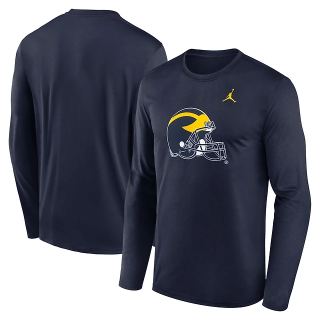 T-shirt Jordan Brand bleu marine pour homme, Michigan Wolverines Primetime Alternate Logo Legend Performance, manches longues