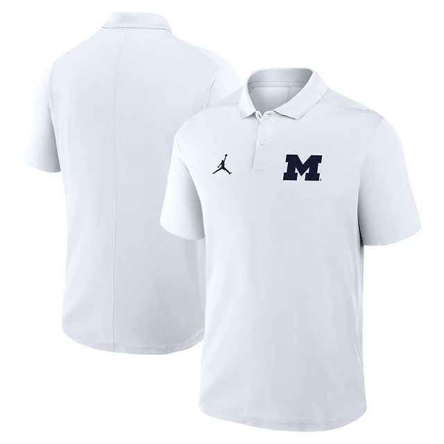 Polo Jordan Brand blanc pour homme avec logo principal des Michigan Wolverines Primetime Victory Performance
