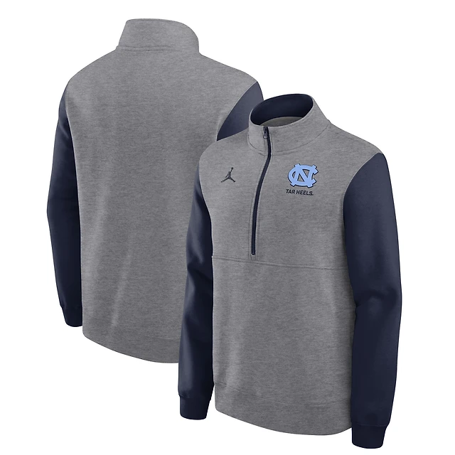 Pull en molleton demi-zippé Jordan Brand pour homme, gris chiné, des Tar Heels Club de Caroline du Nord