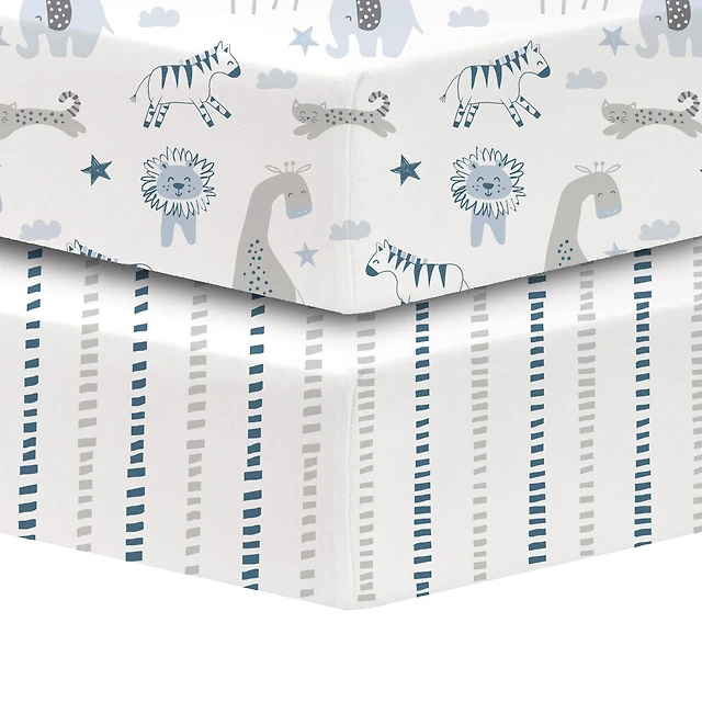 Lot de 2 draps en flanelle Koala Baby Safari/Rayures