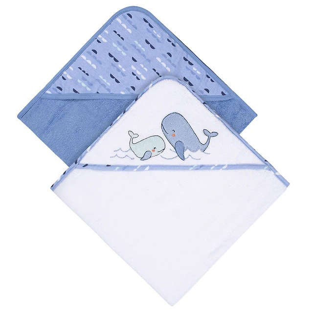 Koala Baby - Serviette à Capuche Tissée Baleine Bleue - Paquet de 2