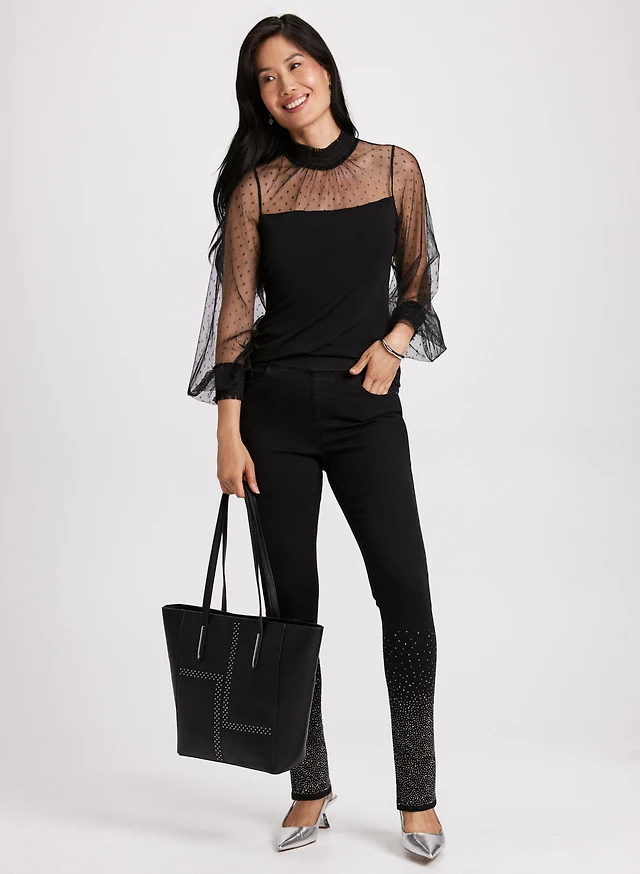 Haut à manches transparentes et jean à pierres