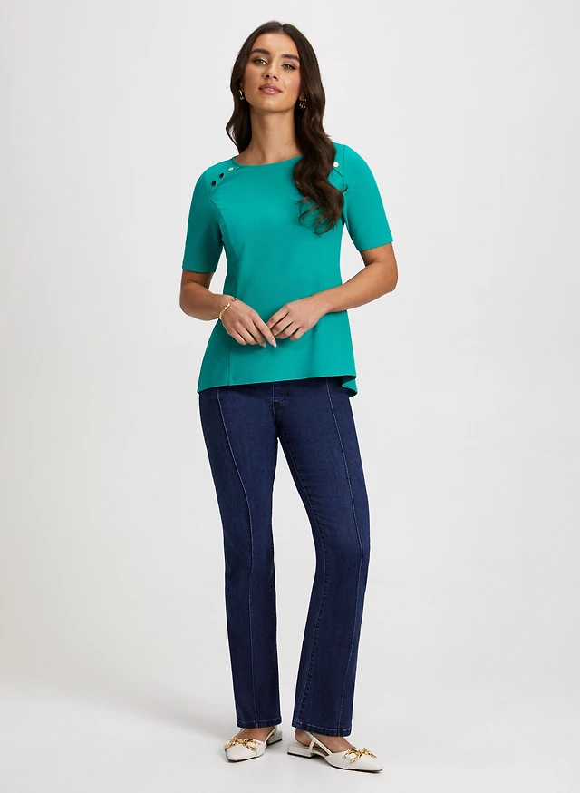 Blazer avec boutons contrastants et pantalon à détail bouton