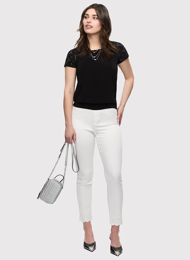 T-shirt à manches ajourées et jean à enfiler