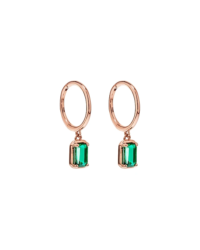 Boucles d’oreilles créoles pendantes avec pierre précieuse émeraude créée en or rose 10 kt