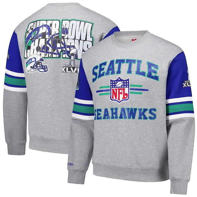 Sweat-shirt à enfiler avec logo vintage Mitchell & Ness pour hommes, gris chiné, Seattle Seahawks All Over 4.0