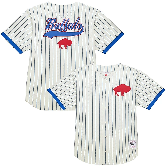 Haut en maille boutonné complet avec logo vintage Buffalo Bills de Mitchell & Ness pour homme, crème