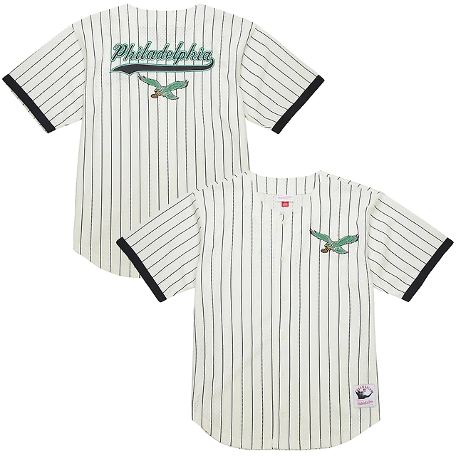 Haut en maille boutonné avec logo vintage Philadelphia Eagles de Mitchell & Ness pour homme, couleur crème, Final Seconds