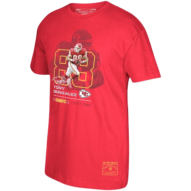 T-shirt graphique rouge pour hommes, joueur retraité des Chiefs de Kansas City, Tony Gonzalez Mitchell & Ness