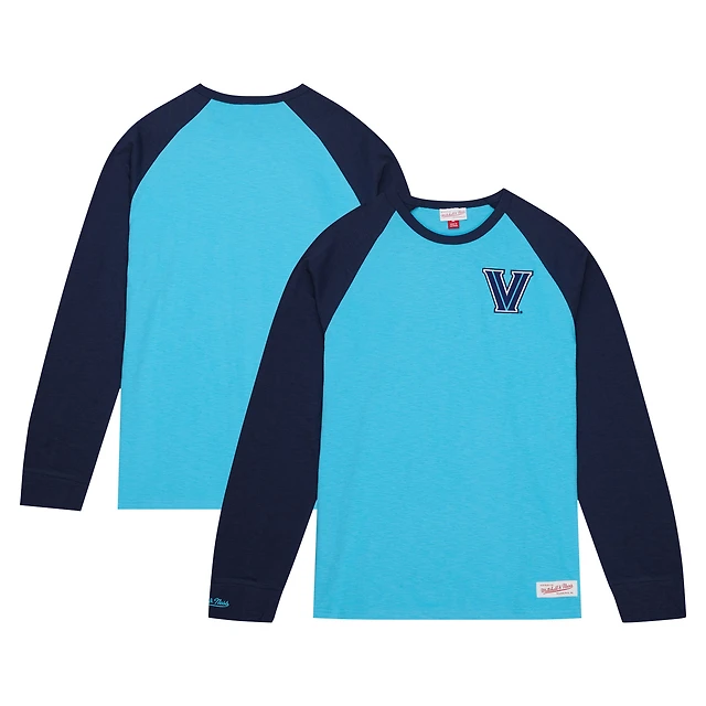 T-shirt à manches longues raglan flammé légendaire Mitchell & Ness Villanova Wildcats bleu clair pour hommes
