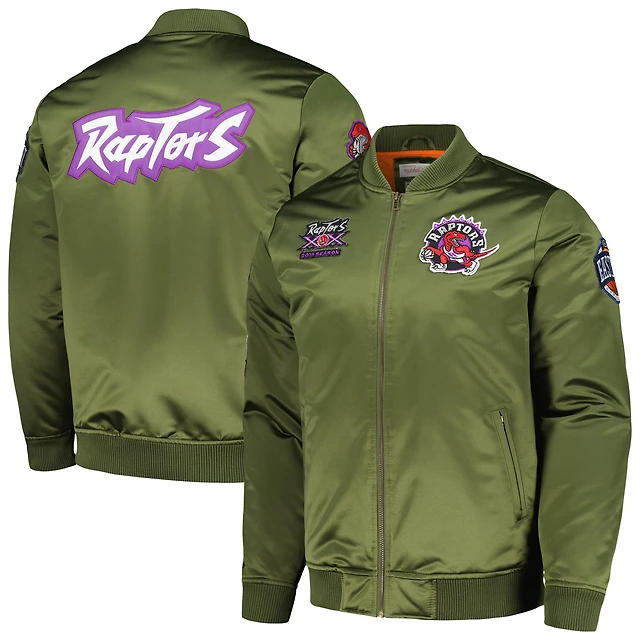 Veste rétro en satin entièrement zippée Mitchell & Ness pour hommes, Toronto Raptors Hardwood Classics, olive