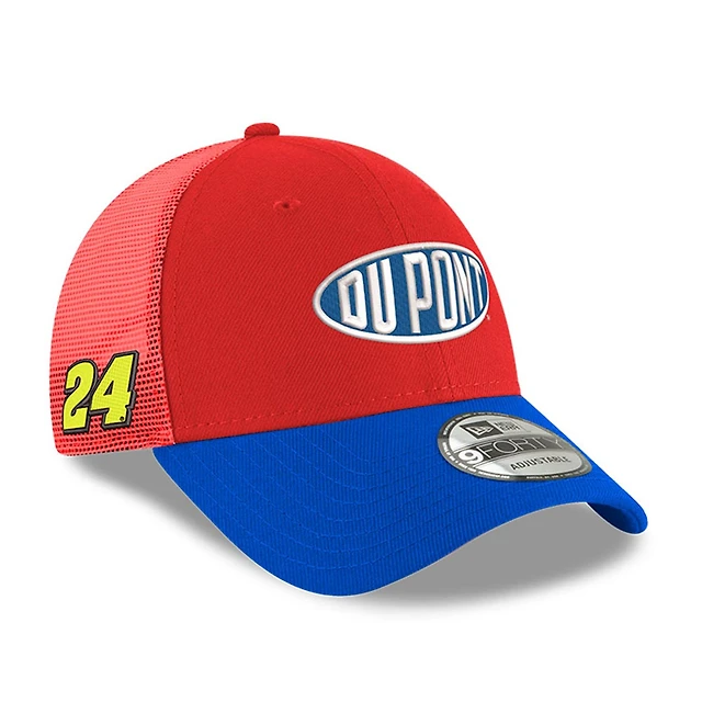 Casquette New Era Scarlet Jeff Gordon Dupont 9FORTY A-Frame Trucker Snapback pour homme