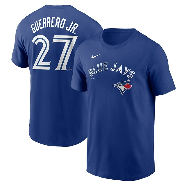 T-shirt Nike pour homme avec nom et numéro de Vladimir Guerrero Jr. Royal Toronto Blue Jays Fuse