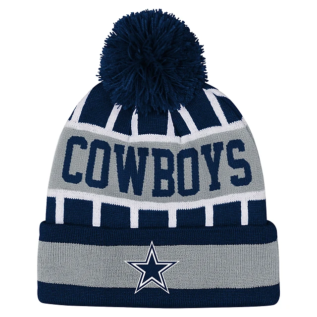 Bonnet en tricot à revers et pompon pour jeunes Cowboys de Dallas, bleu marine, style moderne, Outerstuff