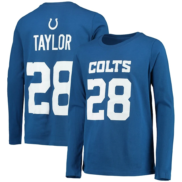 Jeune Jonathan Taylor Royal Indianapolis Colts Mainliner Nom et numéro du joueur T-shirt à manches longues
