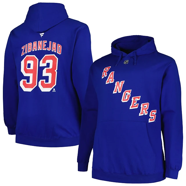 Profil pour hommes Mika Zibanejad Bleu New York Rangers grand et nom numéro Pull à capuche