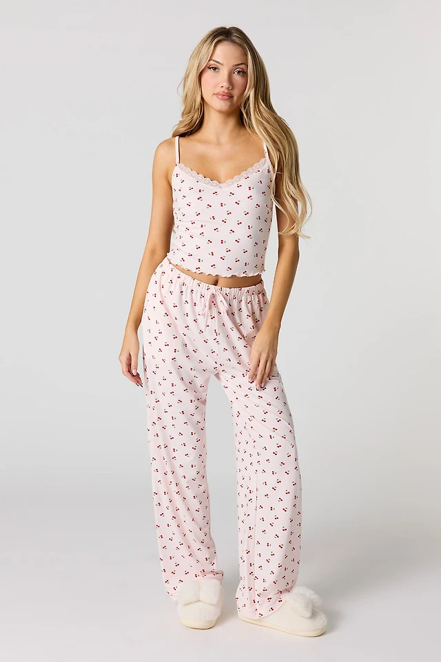Ensemble pyjama avec débardeur à liséré de dentelle et pantalon jambe large