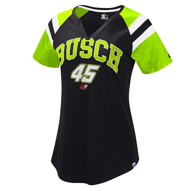 T-shirt à encolure en V Kurt Busch Game On Notch Starter noir/vert pour femme