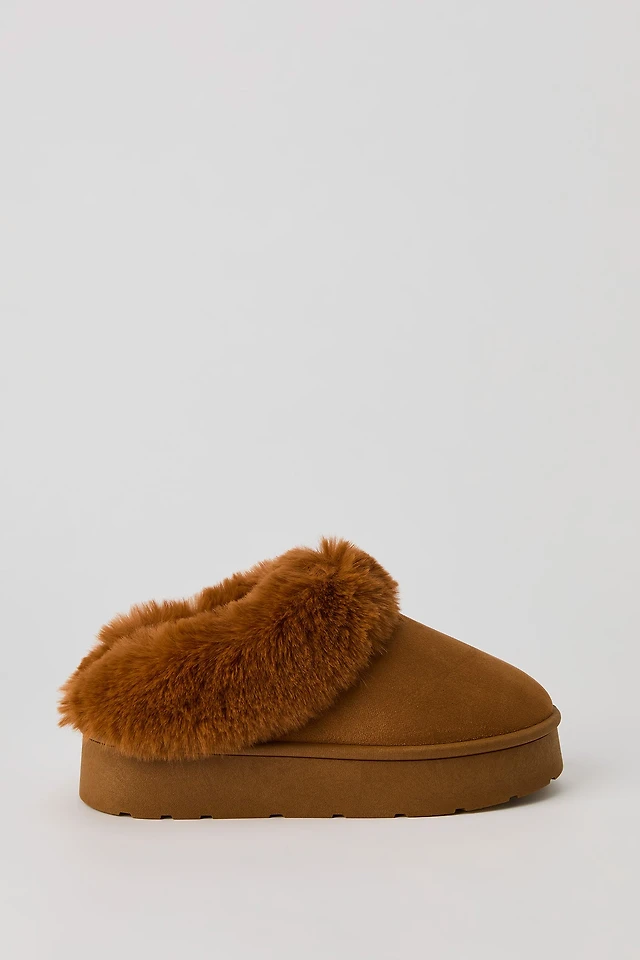 Pantoufles-bottillons à semelle plateforme avec bord en similifourrure