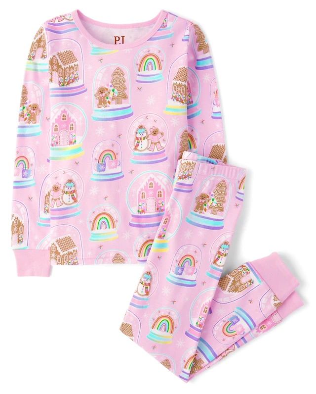 Pyjama en coton ajusté « Boule à neige pain d'épice » pour filles, assorti la sienne