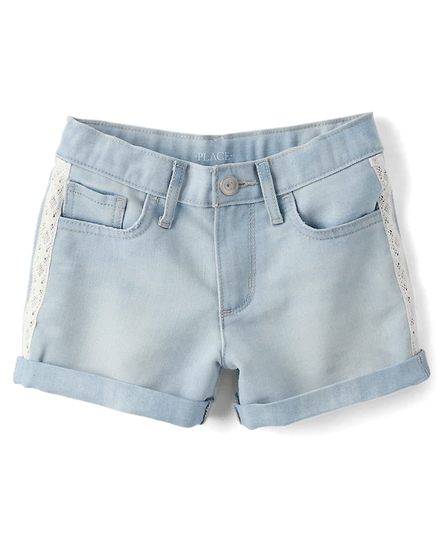 Girls Crochet Roll Cuff Shortie Jean Shorts