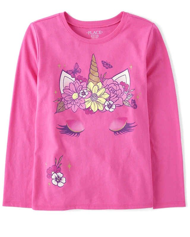 T-shirt graphique à fleurs et papillons pour filles