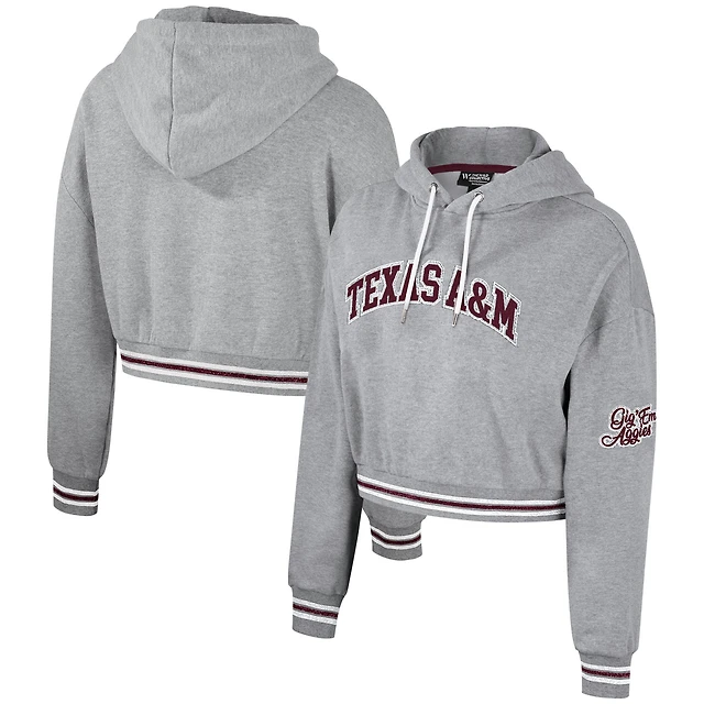 Sweat à capuche court scintillant pour femmes The Wild Collective Heather Grey Texas A&M Aggies