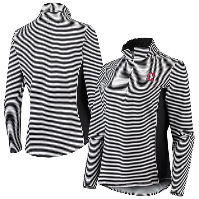 Veste mi-zippée Tommy Bahama Cleveland Guardians Aubrey Stripe Block IslandZone noire pour femme