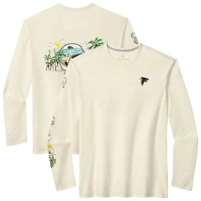 T-shirt à manches longues Tommy Bahama crème Atlanta Falcons Oasis Endzone Lux pour homme