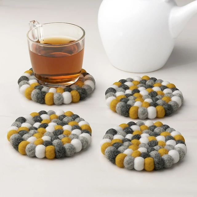 Ens. de 4 sous-verres boule de feutre de laine par Torre & Tagus