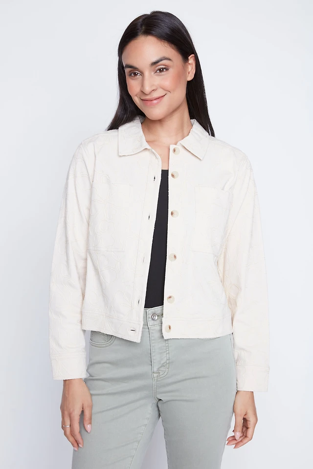 La veste en denim à broderie florale
