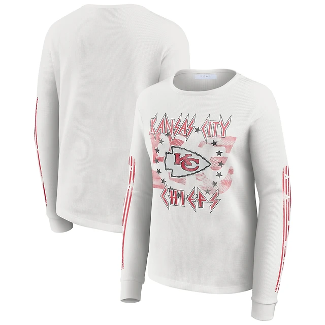 T-shirt blanc à manches longues gaufré pour femme WEAR by Erin Andrews, motif Kansas City Chiefs