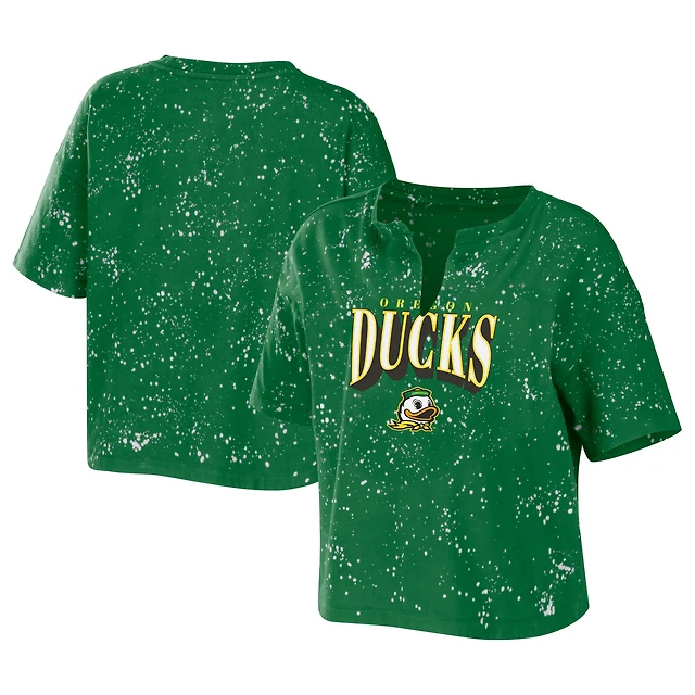T-shirt court à encolure crantée WEAR by Erin Andrews vert Oregon Ducks délavé l'eau de Javel pour femme