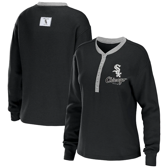 WEAR by Erin Andrews T-shirt à manches longues noir Chicago White Sox Waffle Henley pour femmes