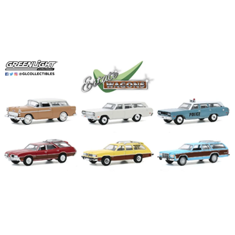 1:64 Estate Wagons est une collection de breaks. Édition limitée et sous licence officielle. Carrosserie et châssis 100% métal moulé sous pression avec accents chromés et pneus en caoutchouc véritable. Emballage à thème authentique. Assorti; le style que vous recevrez variera.