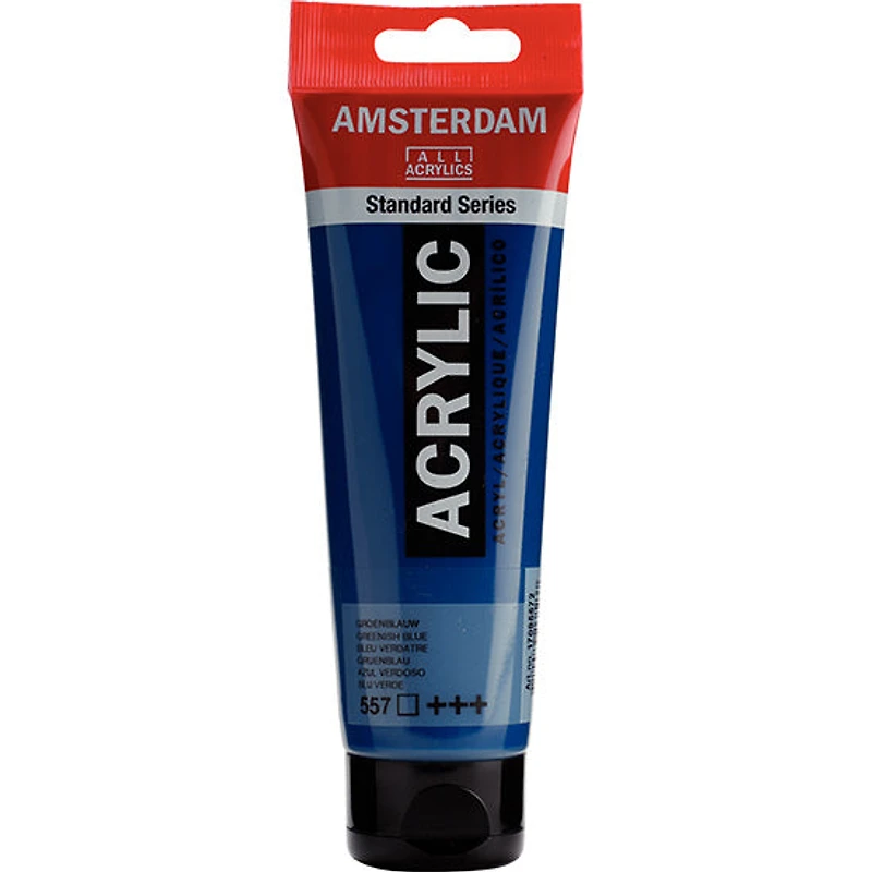 La gamme Amsterdam Standard Series propose une vaste sélection de couleurs brillantes et pures à base d'émulsion acrylique 100 % et de pigments de qualité supérieure. Offrant une excellente résistance à la lumière et un choix varié d'opacités, l’acrylique Amsterdam adhère très bien sur les toiles et les murs, ainsi qu’à plusieurs autres supports non gras : papier, carton, bois, contre-plaqué, béton, panneau d’aggloméré, plâtre, etc. Des couleurs spéciales, métalliques, nacrées et reflex viennent compléter la palette équilibrée de cette peinture de viscosité moyenne. De plus, c’est un choix écologique. Les flacons sont conçus en matière plastique entièrement recyclable et aucun pigment n’est à base de métal lourd. Découvrez les infinies possibilités créatives de l’acrylique Amsterdam !Entretien : nettoyage des pinceaux à l'eau savonneuseSéchage : environ 15 minutes pour une couche mince et jusqu’à 3 heures pour une couche épaisse d’environ ¾ de pouce