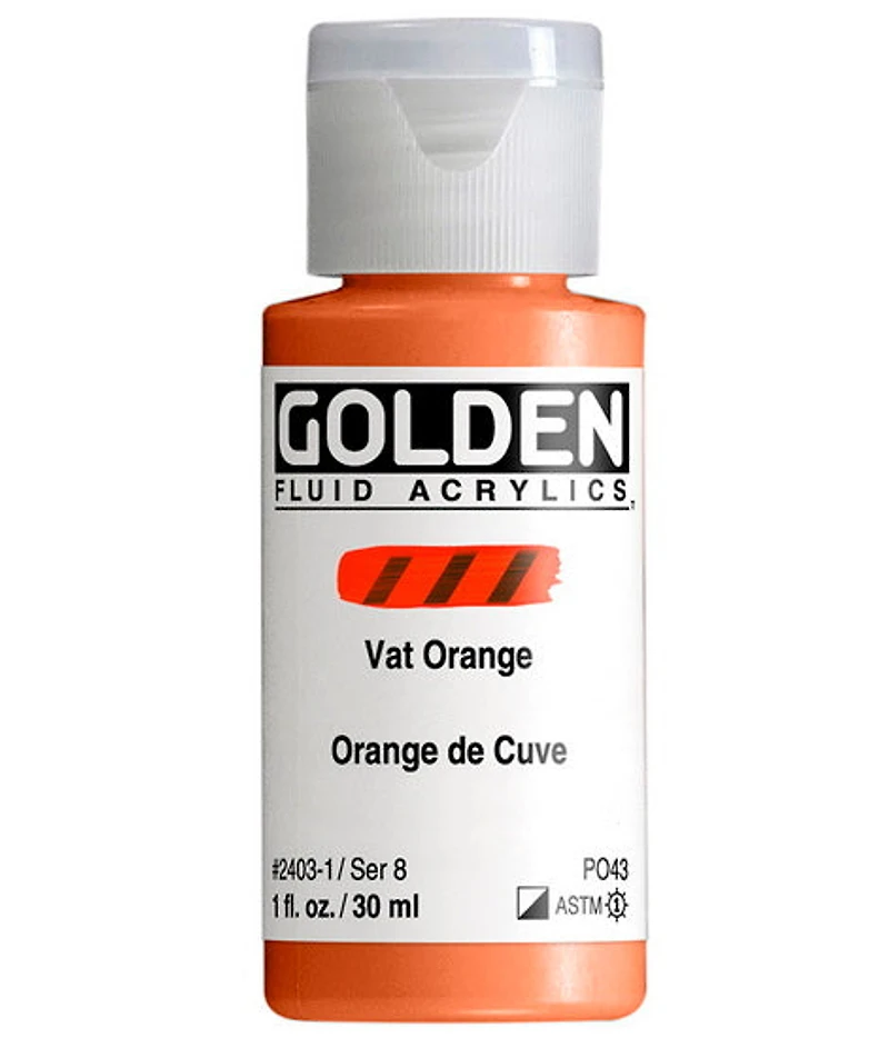 Ayant la même intensité que les acryliques Heavy Body à haute viscosité de GOLDEN, les acryliques Fluid offrent un aspect uniforme et fluide qui convient à des travaux détaillés au pinceau, des glacis, des teintures, des techniques à l'eau et bien plus encore. Vous pouvez mélanger les acryliques Fluid avec le médium pour aérographe GOLDEN pour une application à l'aérographe, y compris sur les textiles. Elles se mélangent facilement à toutes les couleurs acryliques et teintent aisément les gels, les médiums et les apprêts. Les acryliques Fluid de GOLDEN sont fabriquées en chargeant un liant polymère acrylique avec des niveaux concentrés de pigments de qualité, et ce, afin d'obtenir une large sélection de couleurs permanentes et résistantes à la lumière. Aucun agent de remplissage ou d'extension n'est ajouté pour obtenir la consistance souhaitée, et la qualité fluide n'est pas non plus obtenue par l'ajout d'eau. Les acryliques Fluid ont la même charge de pigments que les acryliques Heavy Body à haute viscosité GOLDEN, mais avec une viscosité similaire à celle de la crème épaisse. Les acryliques Fluid permettent des applications fluides, tout en conservant une intensité de couleur, une force de coloration, une intégrité de film et une bonne adhérence.